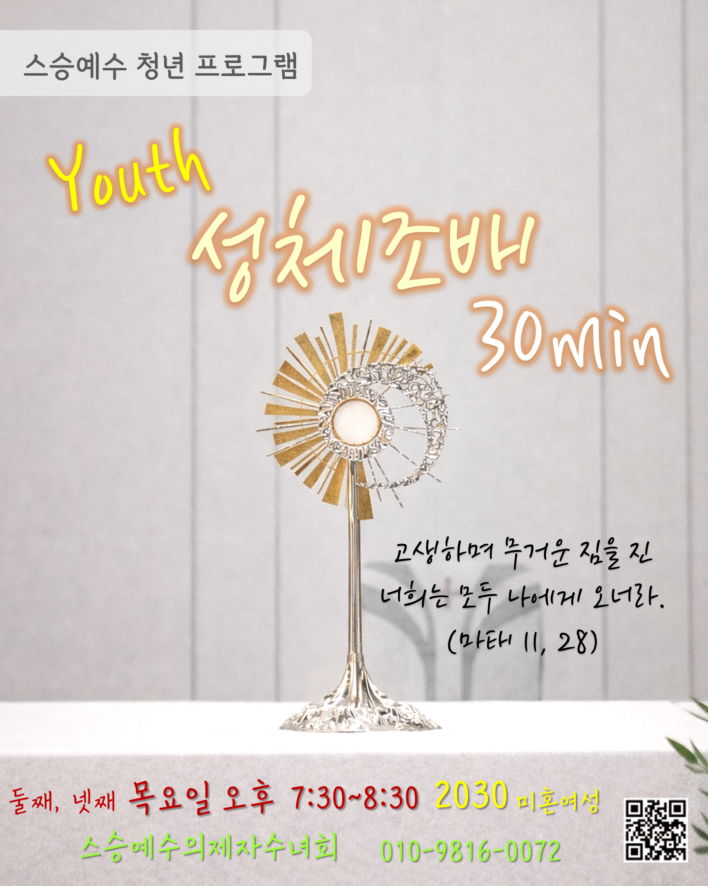 스승예수 청년 프로그램 "첫 번째" YOUTH 성체조배 30분!! "사랑하는 그대에게 침묵을 선물합니다!!"
